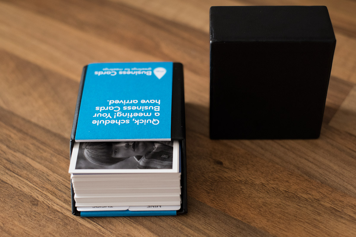 Habe mir mal ein paar neue Visitenkarten erstellt . Nachdem ich mit Vistaprint nicht so zufrieden war (die Erstellung der Karten nervt einfach) , habe ich es dieses mal mit moo.com versucht . Dort gibt es schöne Vorlagen und man versucht den Kunden nicht so viele andere Produkte aufzuschwatzen . Die Qualität finde ich sehr gut , sicher verpackt in einen festen Karton . Natürlich hat das ganze auch seinen Preis , 100 Stück für 30€ + Versand aus den Niederlanden .