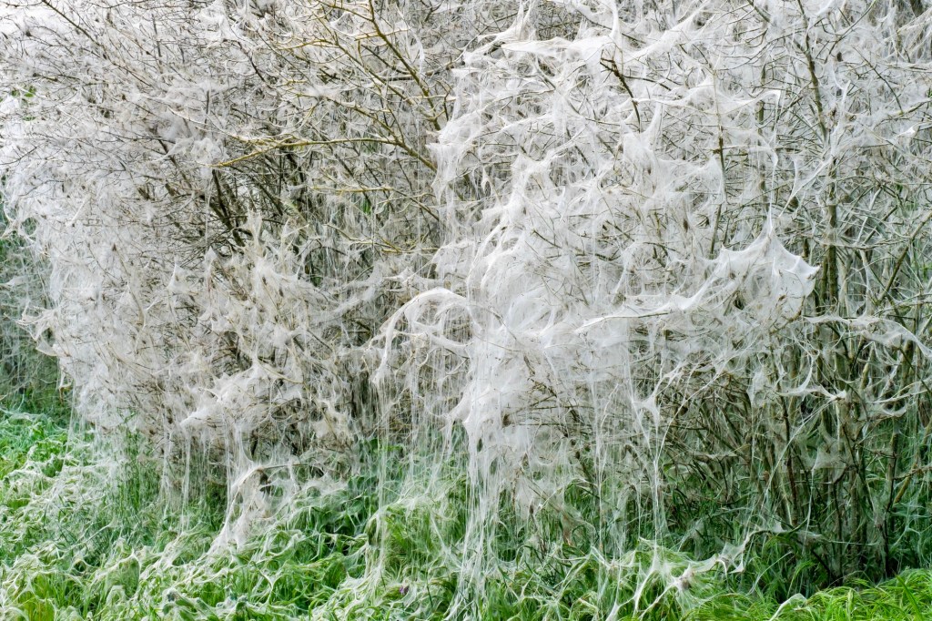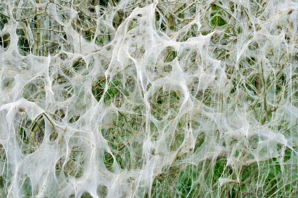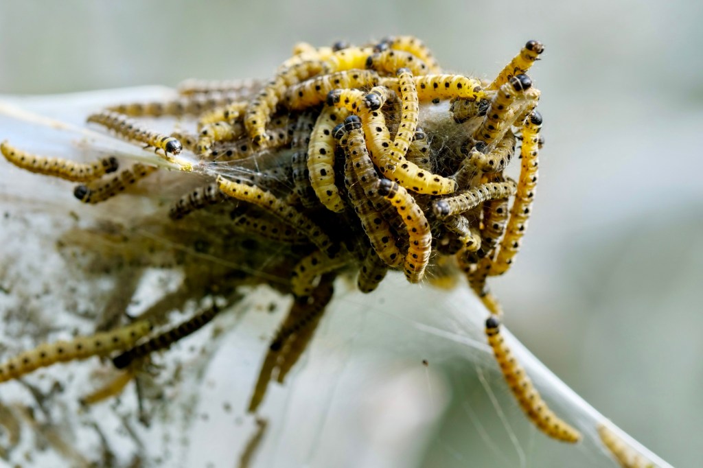 Die Raupen der Gespinstmotte bauen gigantische Bauwerke, dabei wählen sie nur bestimmte Pflanzen/Bäume aus, für Menschen ist sie ungefährlich.