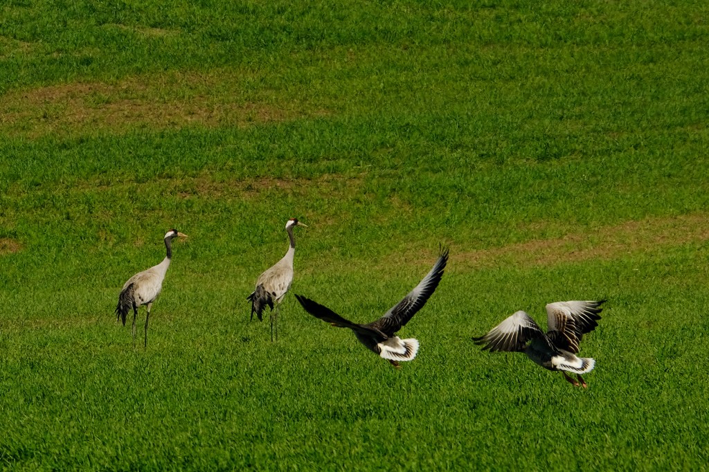 Gestern die ersten 2 Kraniche auf meiner Fahrradrunde gesehen. Leider nicht lange, ein vorbeifahrendes Auto ließ diese davonfliegen. Naja, ist ja nur ein Naturschutzgebiet, auf einer naheliegenden Landwirtschaftsstraße hochbetrieb, trotz Verbot.